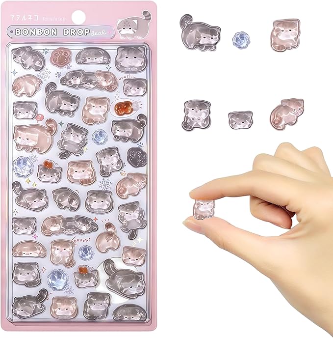 一般的なシールと違い、”ボンボンドロップシール”は、まるで水滴やキャンディが乗っているかのような、透明感のある「ちゅるちゅる」とした光沢と、「ぷっくり」とした立体感が特徴で、光の反射で艶やかで、きらりと見えるシールが、可愛く、そしてSNS映えするんです♪