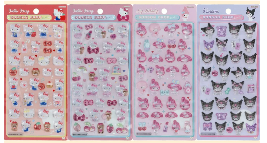 サンリオシリーズは、子どもから大人まで大人気!マイメロにはんぎょどん、ポムポムプリンなどサンリオキャラクターの”ボンボンドロップシール”はどれも集めたくなるほどの可愛さです♪