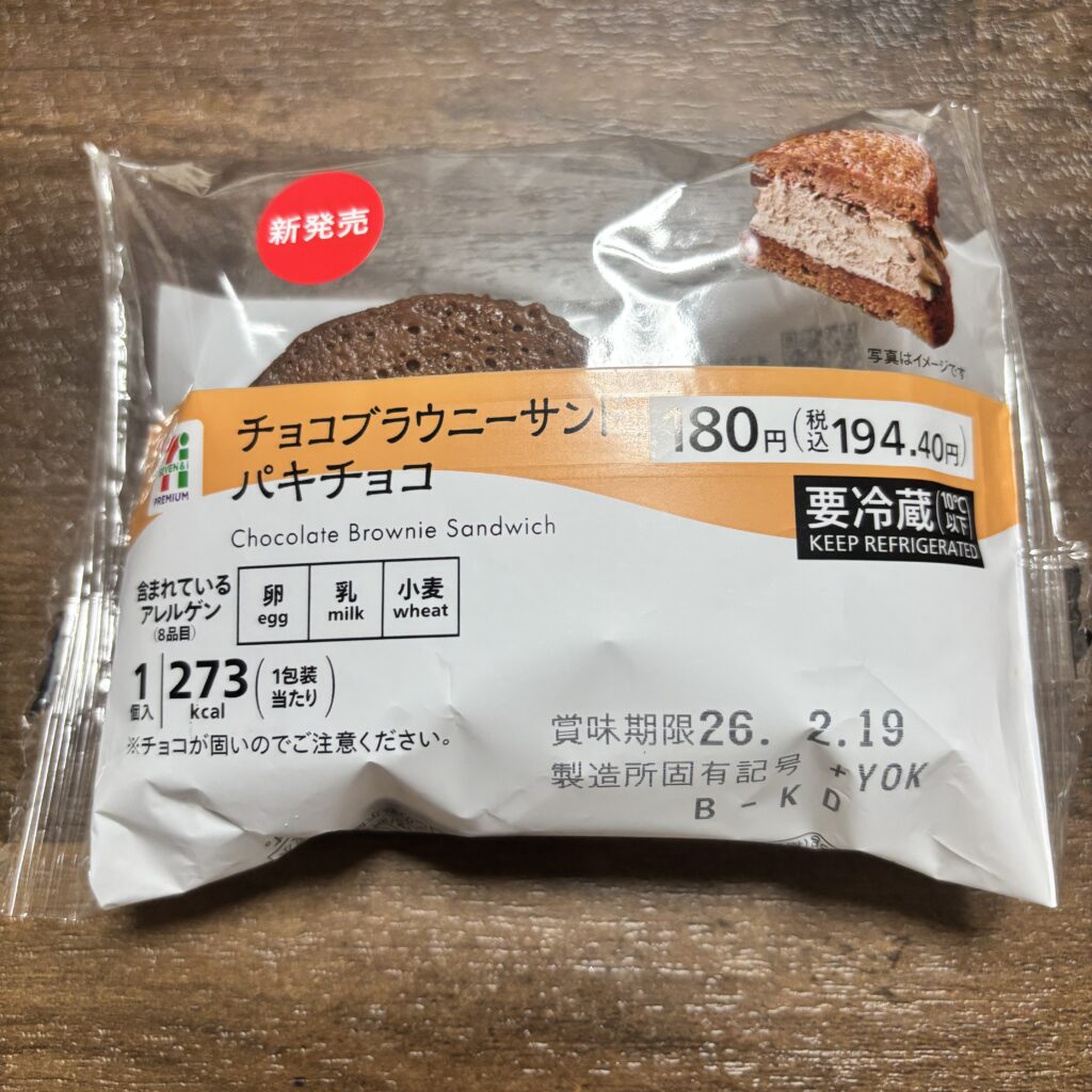 セブンプレミアムの新作スイーツのチョコブラウニーサンドパキチョコは、2026年2月10日(火)に発売されました。