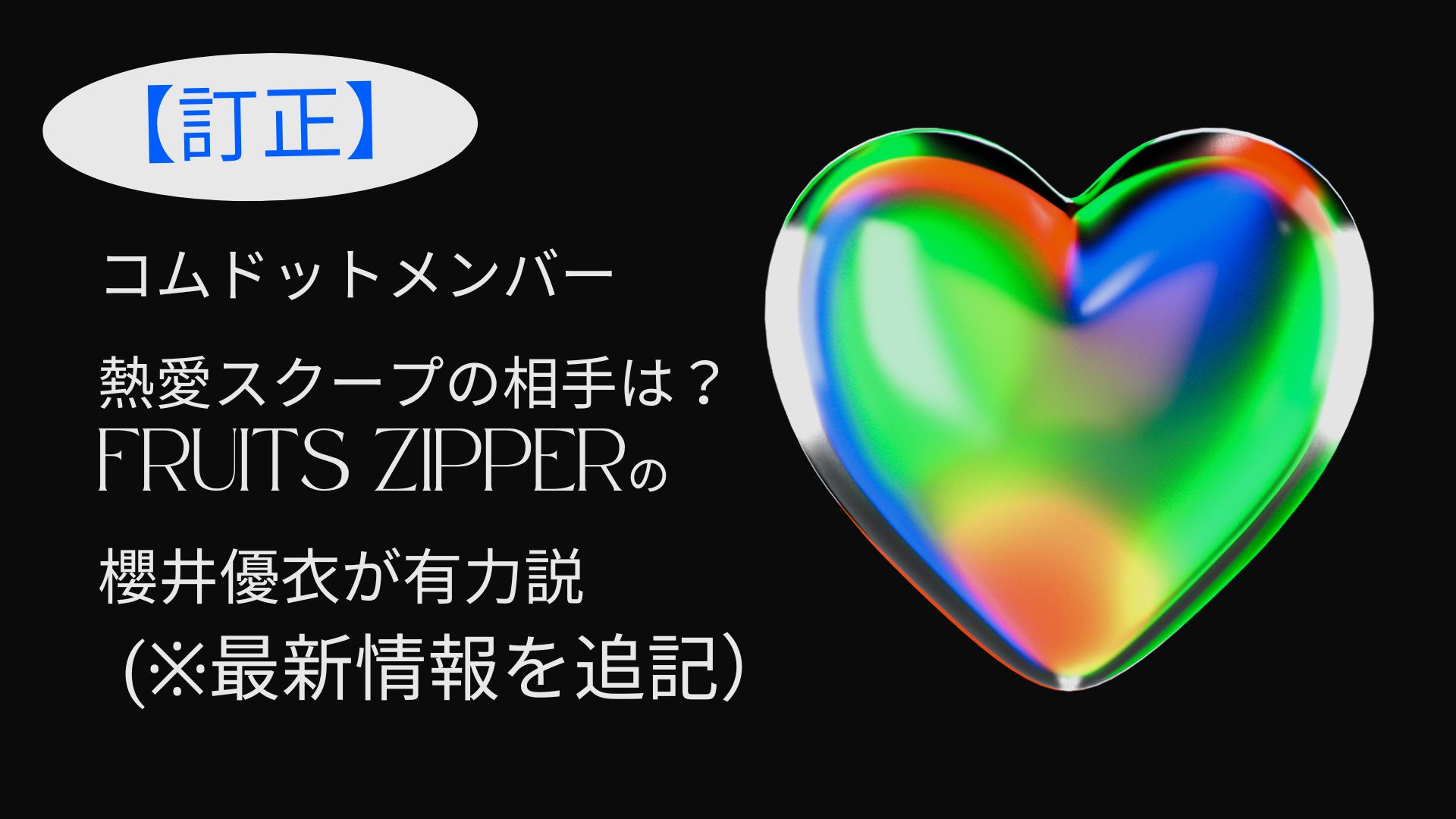 今回は、週刊文春による2026年1月24日の12時に電子版で『コムドット』メンバーが人気アイドルとの熱愛スクープの配信!という投稿をみて、過去のつながりから、『コムドット』のメンバーのひゅうがさんと『FRUITS ZIPPER』のメンバー櫻井優衣さんが有力視されていましたが、