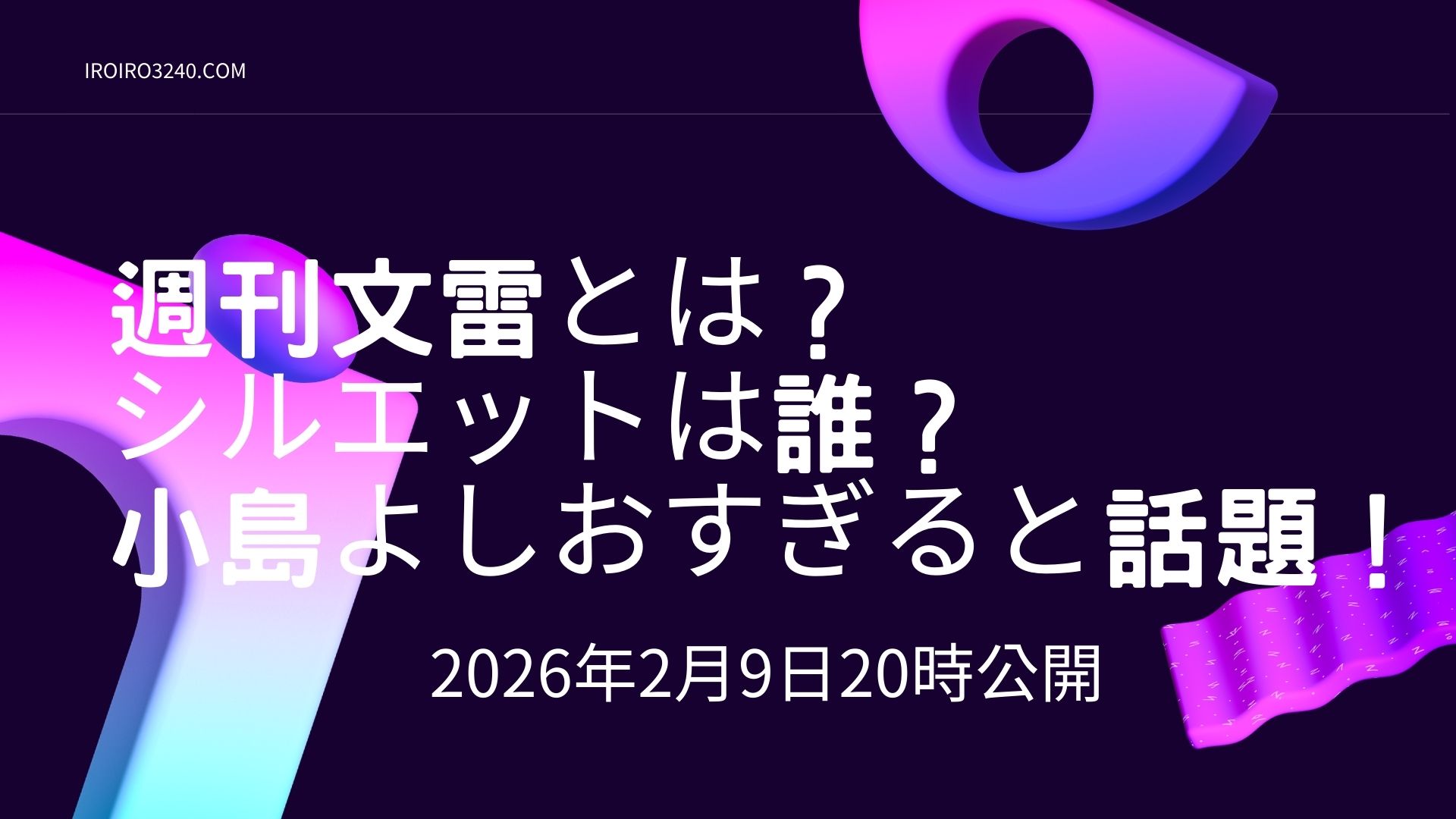2026年2月8日に週刊文雷がX(旧Twitter)が、有名なお笑い芸人と有名インフルエンサーのシルエットを投稿。この2人に関するスクープや話題を、2026年2月9日の20時~発表するといった内容に、「誰?気になる!」、「小島よしおすぎる」と話題を呼んでいます。