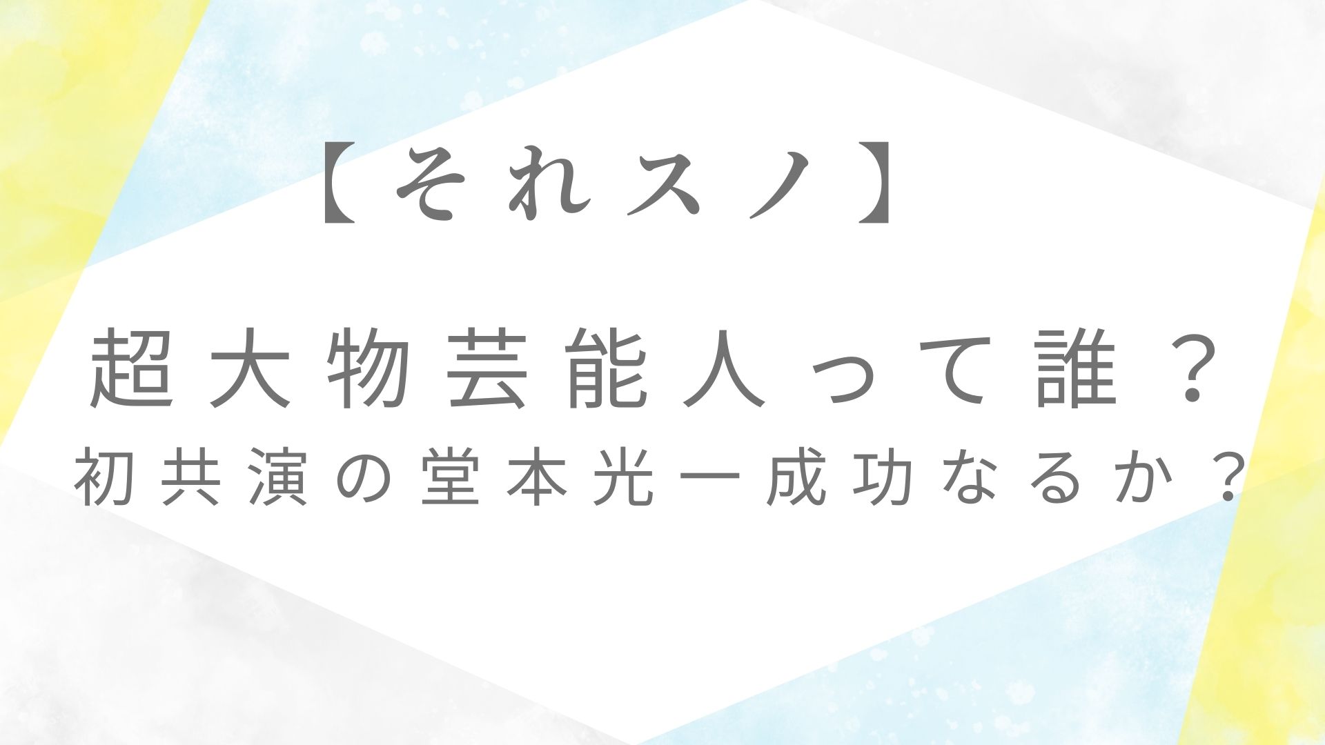 こんにちは♪2026年2月13日(金)19時54分~TBS系『それSnow Manにやらせて下さい』では、KinKi Kidsの堂本光一さんがSnow Manとバラエティ初共演します。ゲストに吉田沙保里さんも迎え、「10人連続完コピチャレンジ」の第2弾に挑戦。予告映像では、Snow Manの9人が作業着姿に堂本光一さんのショットに、放送前から反響を呼んでいます。また、超大物芸能人がサプライズで登場すると予告。気になる超大物芸能人について、誰が登場するのか?スタジオで全員がズッコケた理由とは?番組の詳細も合わせて紹介します。