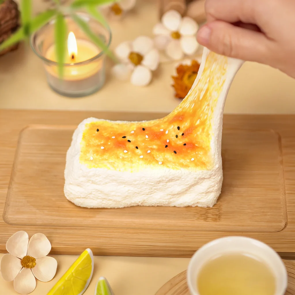 - 特徴:とても柔らかく、もちもちとした触り心地が特徴の低反発おもちゃ(スクイーズ)で、『メロジョイ(Mellojoy)』のスクイーズは、ホイップ系の柔らかさや伸びて戻るエラスティック系と触感バリエーションが豊富